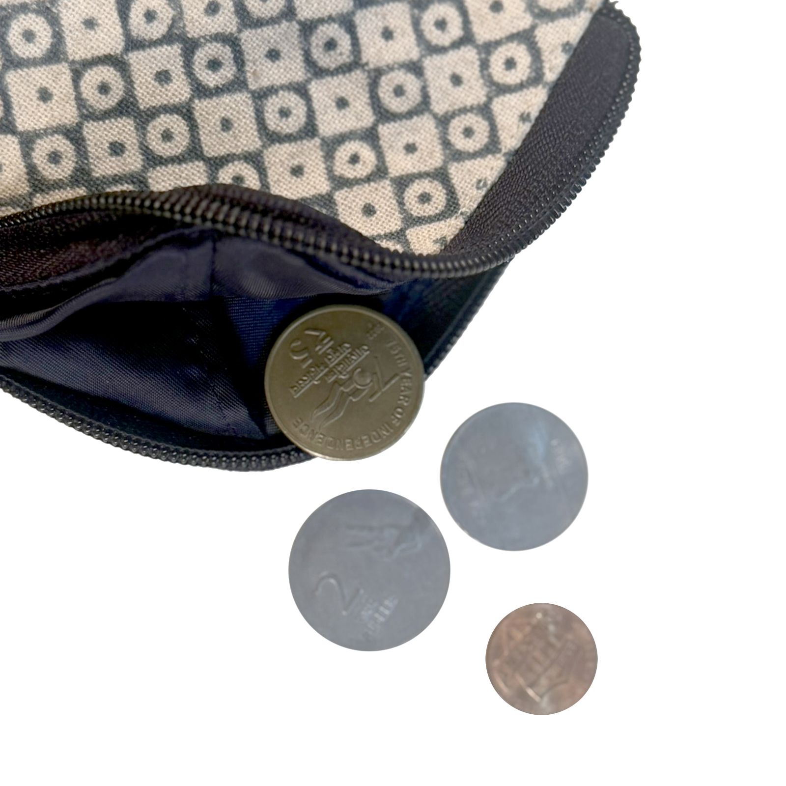 Stay organised in style with this compact zippered pouch featuring a striking blue and white geometric diamond pattern. Crafted from breathable cotton fabric, it includes a smooth zipper closure and a matching wrist strap for easy portability. Ideal for coins, keys, cards, or small accessories, this pouch blends artisan charm with everyday functionality—perfect for travel, errands, or gifting.